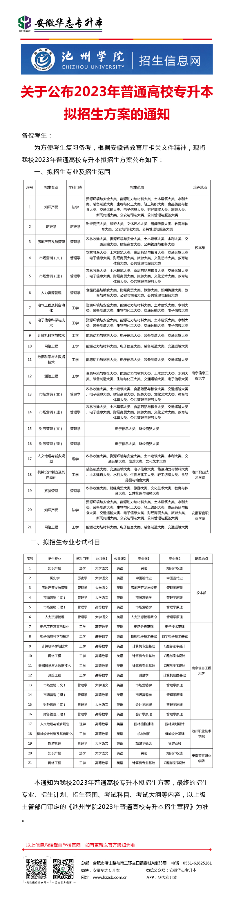 为方便考生复习备考,根据安徽省教育厅相关文件精神,现将我校2023年普通高校专升本拟招生方案公布如下: