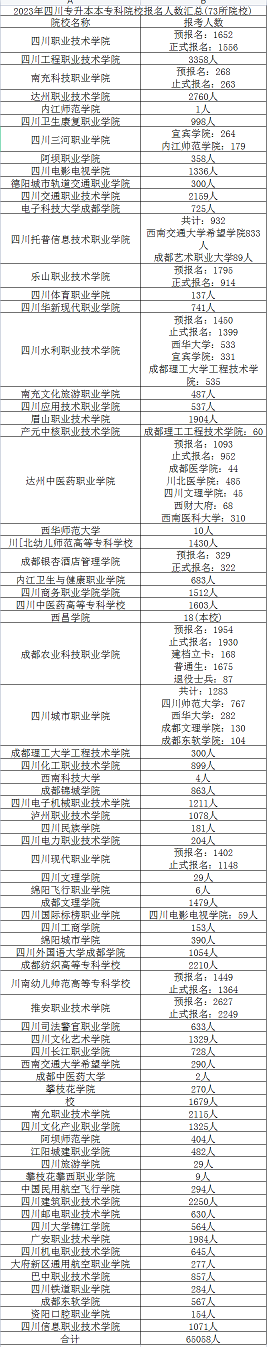 2023四川专升本报名各院校报名人数汇总